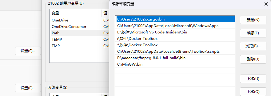 然后把路径地址填写到用户变量里,打开用户变量→选择双击Path 新建→输入变量名bin →路径 C:\MinGW\bin